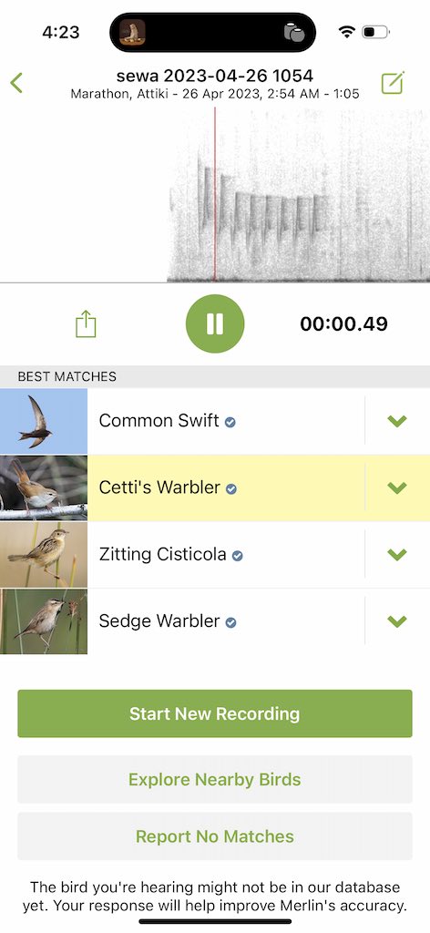 Merlin now highlights species during playback. Previously it only noted species during the initial recording.